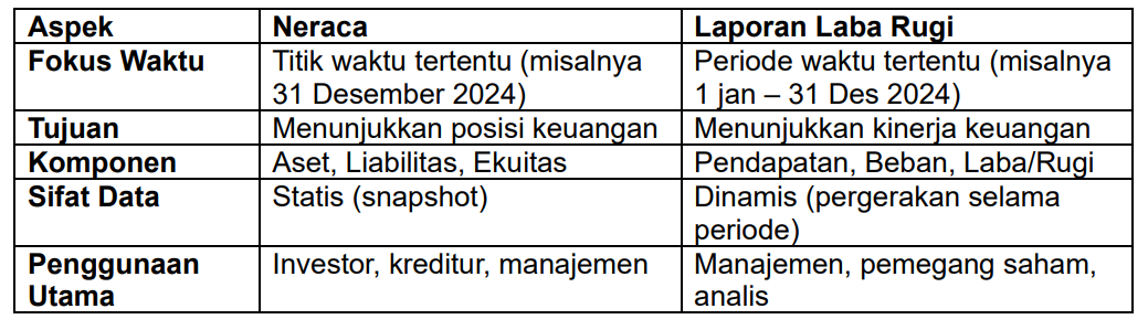 3. Perbedaan Utama Neraca dan Laporan Laba Rugi