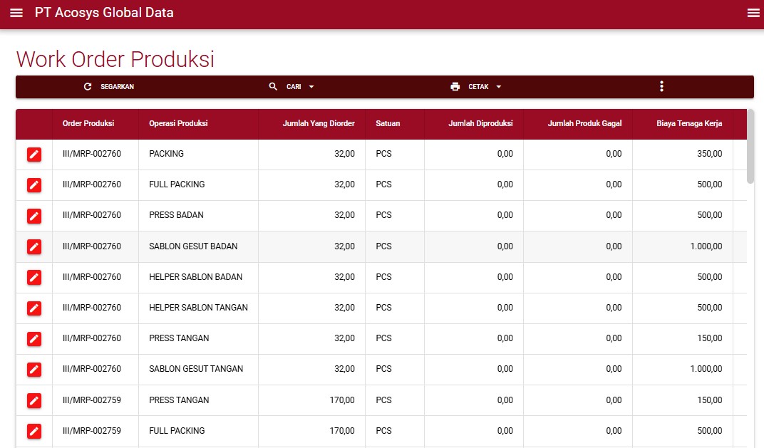 Mencatat order produksi dengan software (perangkat lunak) merupakan langkah penting dalam manajemen manufaktur modern. Proses ini melibatkan perekaman detail pesanan produksi ke dalam sistem, yang kemudian digunakan untuk perencanaan, penjadwalan, pengendalian, dan pelaporan produksi. Mencatat order produksi dengan software merupakan investasi yang penting bagi usaha manufaktur. Dengan memilih dan menerapkan software yang tepat, perusahaan dapat meningkatkan efisiensi, akurasi, dan pengendalian produksi, yang pada akhirnya akan berdampak positif pada profitabilitas dan daya saing.
